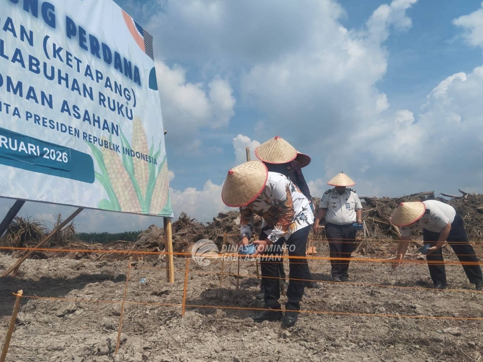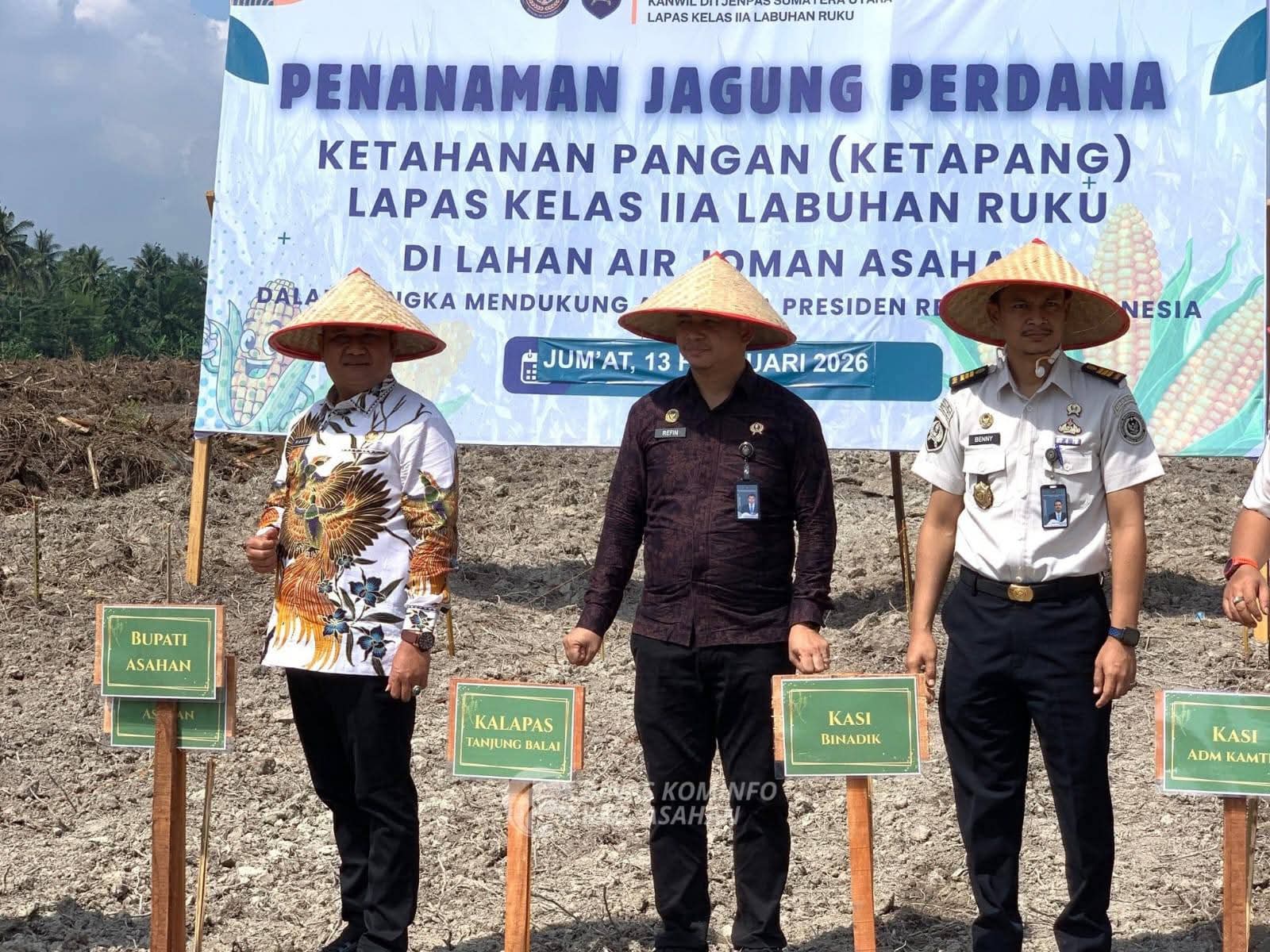 Bupati Asahan di Wakili oleh Wakil Bupati Rianto, S.H., M.AP., menghadiri kegiatan penanaman jagung perdana dalam rangka program Ketahanan Pangan (Ketapang) yang dilaksanakan oleh Lembaga Pemasyarakatan (Lapas) Kelas IIA Labuhan Ruku di lahan Air Joman, Kabupaten Asahan, Jumat (13/02/2026).