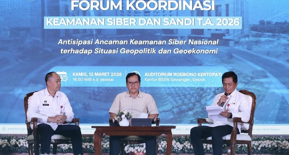 Jakarta — Keamanan siber nasional menjadi fokus utama dalam Rapat Koordinasi Forum Koordinasi Keamanan Siber dan Sandi Nasional Tahun 2026 yang diselenggarakan oleh Badan Siber dan Sandi Negara (BSSN). Kegiatan ini digelar di Auditorium dr. Roebiono Kertopati, Kantor BSSN Sawangan, Jakarta, Kamis (12/03/2026).