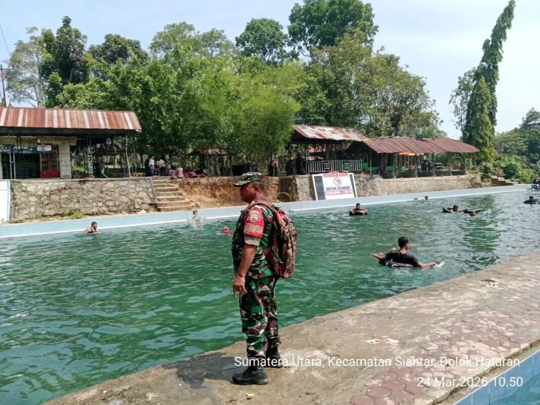 Simalungun, Redaksisatu.Id.batubara — Babinsa PAS Mariah Jambi menunjukkan kepedulian terhadap keselamatan wisatawan di tengah meningkatnya kunjungan libur. Kegiatan ini dilakukan di kawasan Pemandian Alam Sejuk (PAS), Nagori Mariah Jambi, Kecamatan Jawa Maraja Bah Jambi, Selasa (24/03/2026).