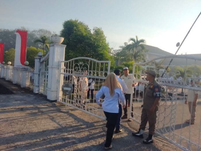 ASN Asahan telat terlihat saat apel pagi di halaman Kantor Bupati dimulai tepat pukul 07.30 WIB. Namun, gerbang utama sudah ditutup lebih awal pada pukul 07.25 WIB, sehingga pegawai yang datang terlambat tidak bisa langsung mengikuti barisan apel.