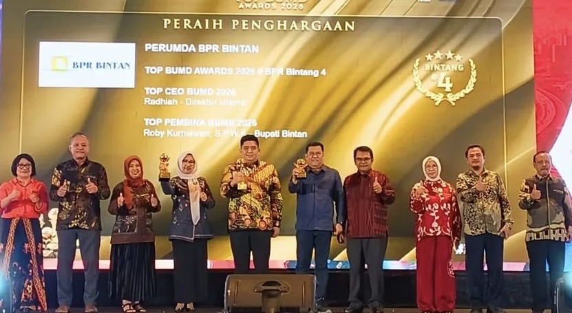 BPR Bintan borong 3 penghargaan sekaligus dalam ajang tersebut. Tiga penghargaan yang diraih meliputi TOP Pembina BUMD 2026 yang diberikan kepada Roby Kurniawan, TOP BUMD Awards 2026 kategori BPR Bintang 4 untuk Perumda BPR Bintan, serta TOP CEO BUMD 2026 yang diraih oleh Radhiah.