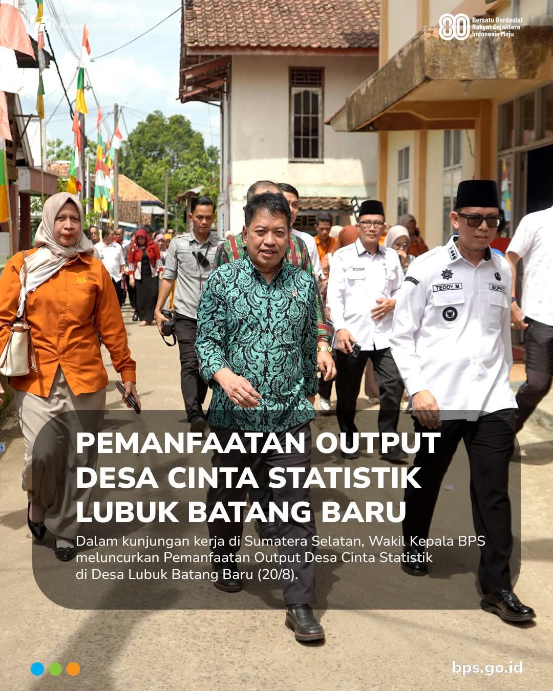 Wakil Kepala BPS, Sonny Harry Budiutomo Harmadi didampingi Bupati Ogan Komering Ulu, Teddy Meilwansyah meluncurkan Pemanfaatan Output Desa Cinta Statistik (Desa Cantik) di Desa Lubuk Batang Baru (20/8). Turut hadir pada acara launching tersebut, yaitu: Direktur Statistik Ketahanan Sosial BPS, Nurma Midayanti dan Kepala BPS Provinsi Sumatera Selatan (Sumsel), Moh. Wahyu Yulianto.