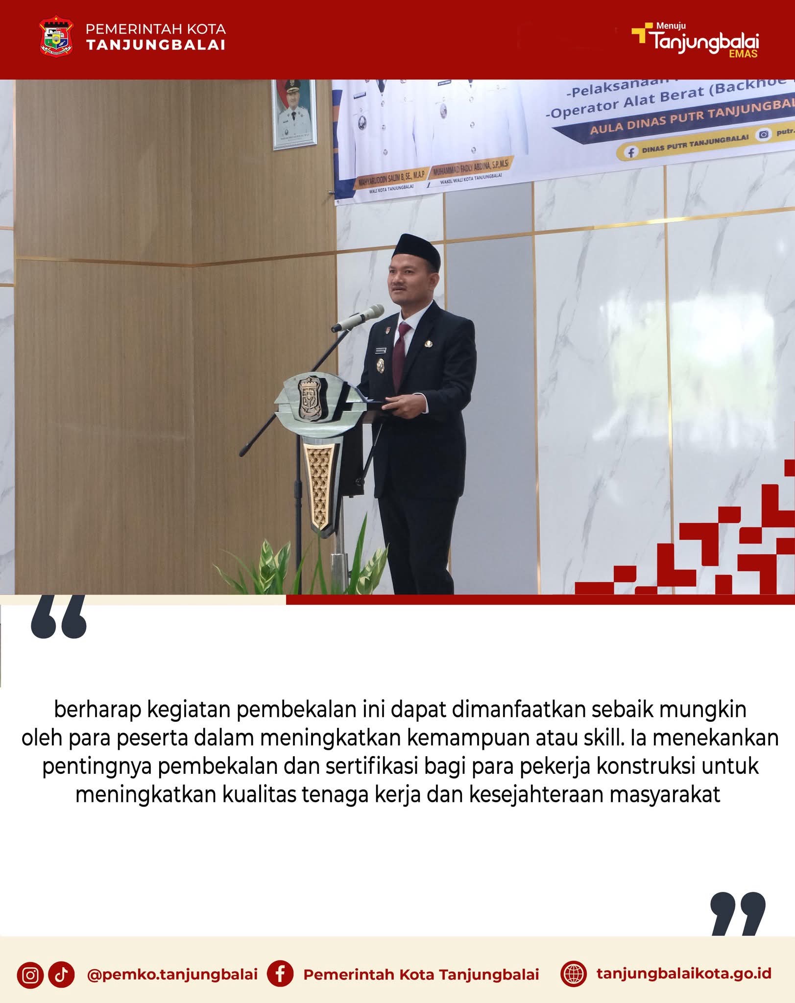 Wali Kota Tanjungbalai, Mahyaruddin Salim, dalam sambutannya menyampaikan bahwa kegiatan ini dapat bermanfaat bagi peserta dan meningkatkan kualitas tenaga kerja konstruksi di Kota Tanjungbalai. Ia berharap melalui kegiatan Pembekalan ini dapat tercipta tenaga kerja konstruksi yang tidak hanya unggul secara teknis, tetapi juga mampu memberikan kontribusi nyata bagi pembangunan daerah.