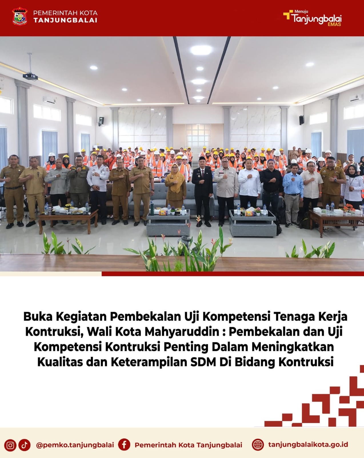 Wali Kota Tanjungbalai, Mahyaruddin Salim secara resmi membuka kegiatan Pembekalan Uji Kompetensi Tenaga Kerja Kontruksi Tahun 2025 yang digelar oleh Dinas Pekerjaan Umum dan Tata Ruang (PUTR) Kota Tanjungbalai. Acara berlangsung di Aula Dinas Pendidikan Kota Tanjungbalai, Selasa (21/10/2025).