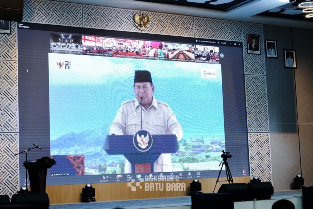 Zoom meeting yang dipimpin langsung oleh Presiden Republik Indonesia Prabowo Subianto diselenggarakan di Aula Kantor Bupati Batu Bara, Desa Perkebunan Lima Puluh Kecamatan Lima Puluh, Senin (21/07/2025).