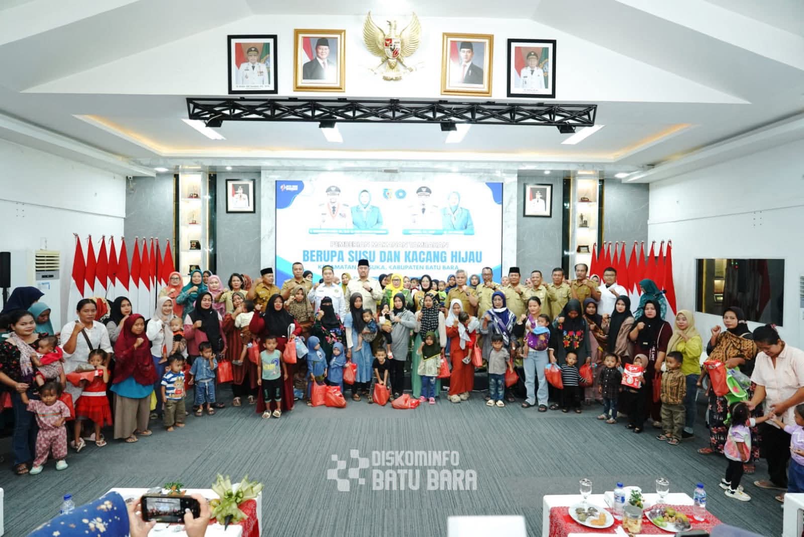 Bupati Batu Bara, H. Baharuddin Siagian, S.H., M.Si., bersama Ketua Tim Penggerak Pemberdayaan dan Kesejahteraan Keluarga (TP-PKK) Kabupaten Batu Bara, Ny. Henny Heridawaty Baharuddin menghadiri kegiatan pemberian makanan tambahan berupa susu dan kacang hijau secara gratis kepada anak-anak stunting di Kecamatan Sei Suka. Kegiatan tersebut berlangsung di Aula Rumah Dinas Bupati Batu Bara.