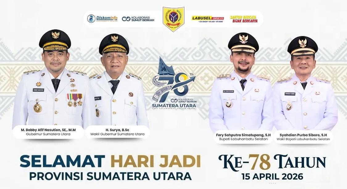 Labuhanbatu Selatan, Redaksisatu.Id.batubara — Peringatan Hari Ulang Tahun (HUT) ke-78 Provinsi Sumatera Utara yang jatuh pada Rabu (15/04/2026) menjadi momentum penting bagi pemerintah daerah untuk memperkuat sinergi pembangunan.