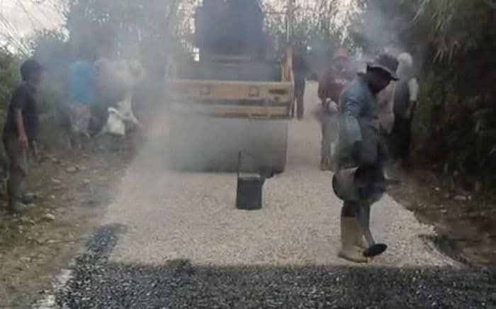 Perbaikan jalan dilakukan menggunakan metode pengaspalan lapisan penetrasi atau lapen. Pengerjaan telah berlangsung sekitar dua minggu dengan progres pengaspalan sepanjang kurang lebih 120 meter dan lebar 3 meter.