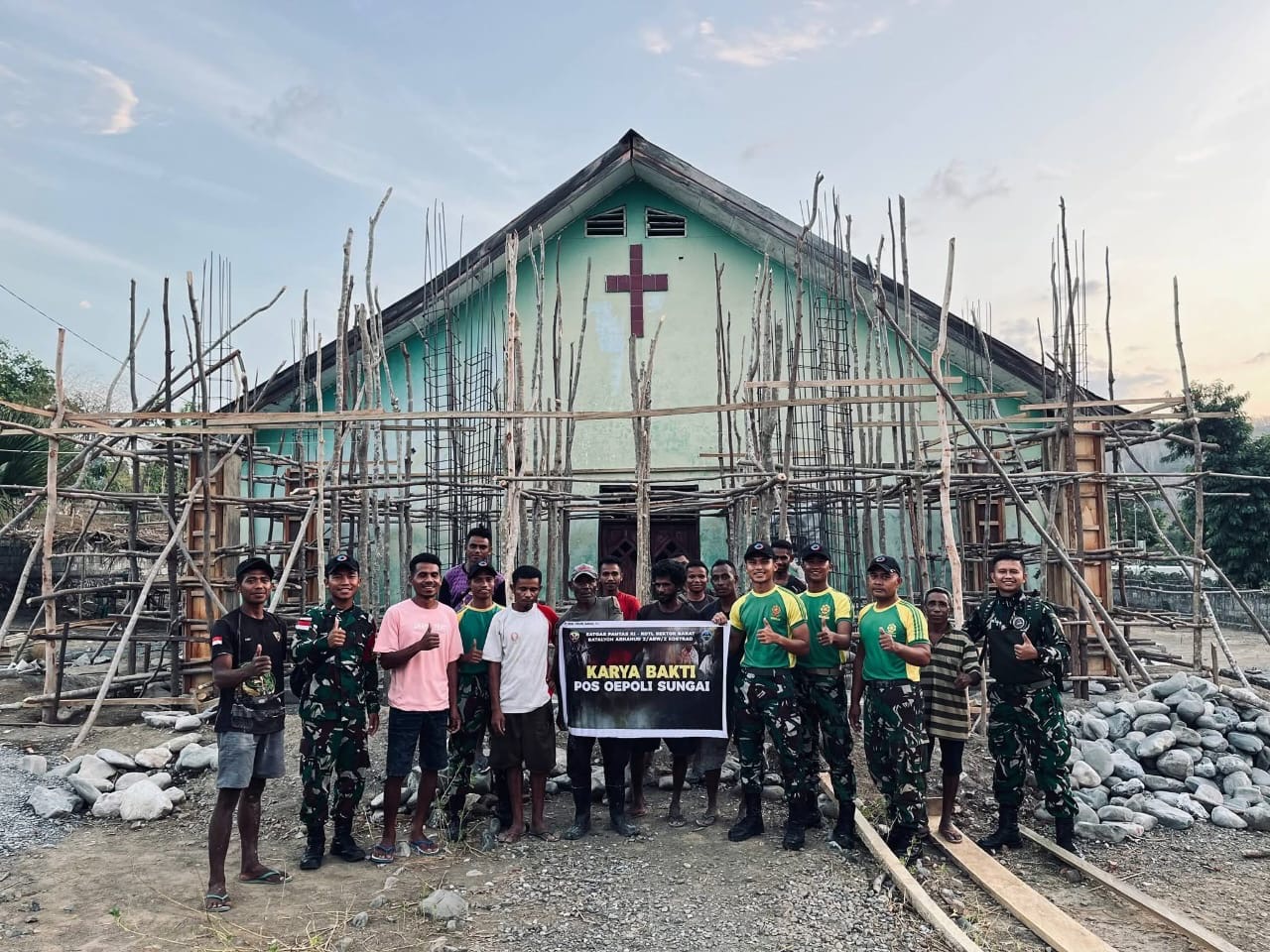 Kegiatan tersebut bertujuan untuk melanjutkan pembangunan Gereja Talitakum Taloi yang belum selesai, yang diketahui bahwa masyarakat Desa Netemnanu melaksanakan ibadah di gereja ini. Kegiatan melanjutkan pembangunan Gereja itu dipimpin langsung oleh Danpos Oepoli Sungai Letda Cba Rofid. Prajurit Satgas dan masyarakat terlihat sangat menyatu dalam kebersamaan karya bakti ini.