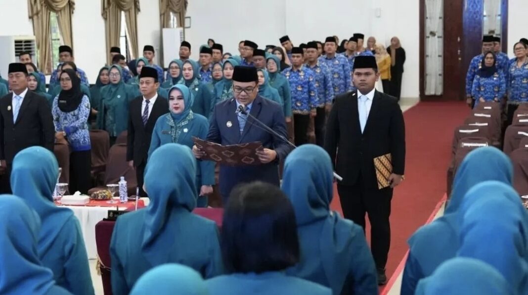 Pelantikan berlangsung di Aula Cendana Lantai II Kantor Bupati, Jumat (17/04/2026). Bupati hadir langsung bersama Ketua TP PKK Kabupaten Deli Serdang Ny. Jelita Asri Ludin Tambunan dalam kegiatan tersebut.