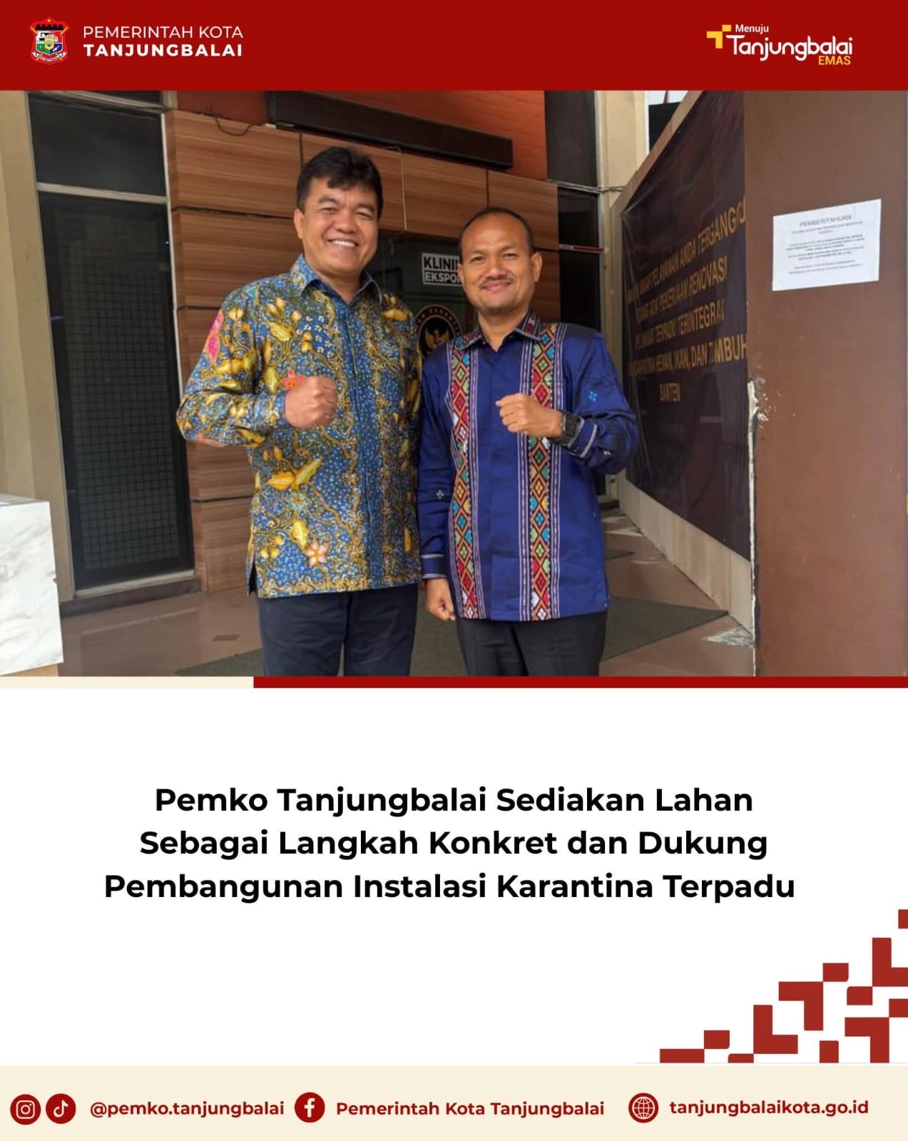 Dalam pembicaraan dan diskusi tersebut, Wali Kota mengatakan bahwa Pemko Tanjungbalai telah menyediakan lahan seluas 5 Ha yang akan dipakai untuk kantor dan instalasi karantina terpadu nantinya. Hal ini juga menjadi bagian dukungan Pemerintah Kota Tanjungbalai yang memang belum memiliki karantina terpadu, sehingga layanan dibidang Karantina bisa lebih maksimal lagi,” kata Wali Kota Mahyaruddin lagi.