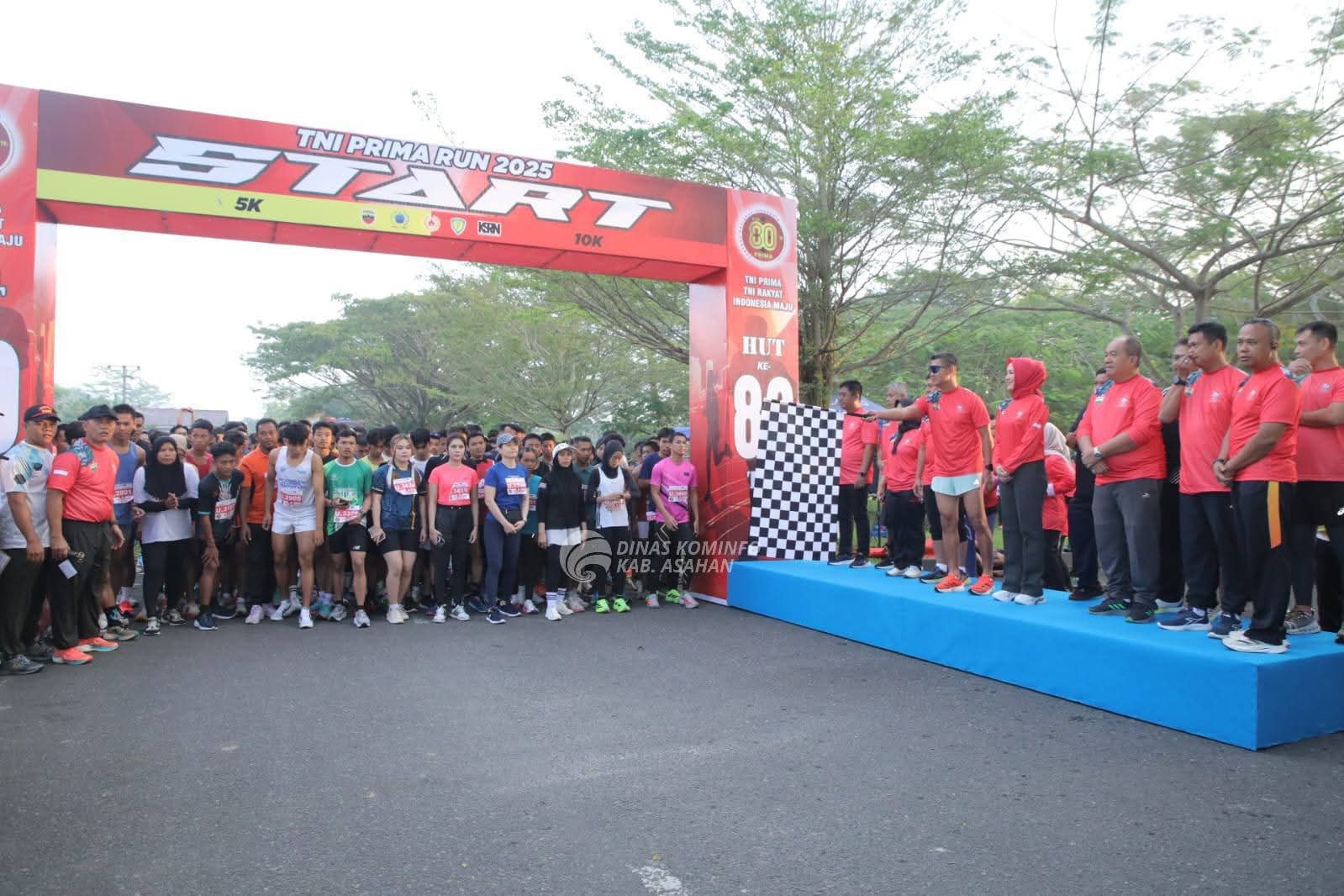 Dalam rangka memperingati Hari Ulang Tahun (HUT) ke-80 Tentara Nasional Indonesia (TNI), Kodim 0208/Asahan menggelar TNI PRIMA RUN 5K dan 10K di Alun-Alun Rambate Rata Raya Kisaran. Kegiatan ini berlangsung meriah dan diikuti oleh 3.573 peserta dari berbagai kalangan. Selain lomba lari, acara juga dimeriahkan dengan hiburan musik, bazar UMKM, aksi sosial, dan pembagian doorprize menarik, menjadikannya momentum kebersamaan yang sehat, gembira, dan penuh kekeluargaan antara TNI dan masyarakat.