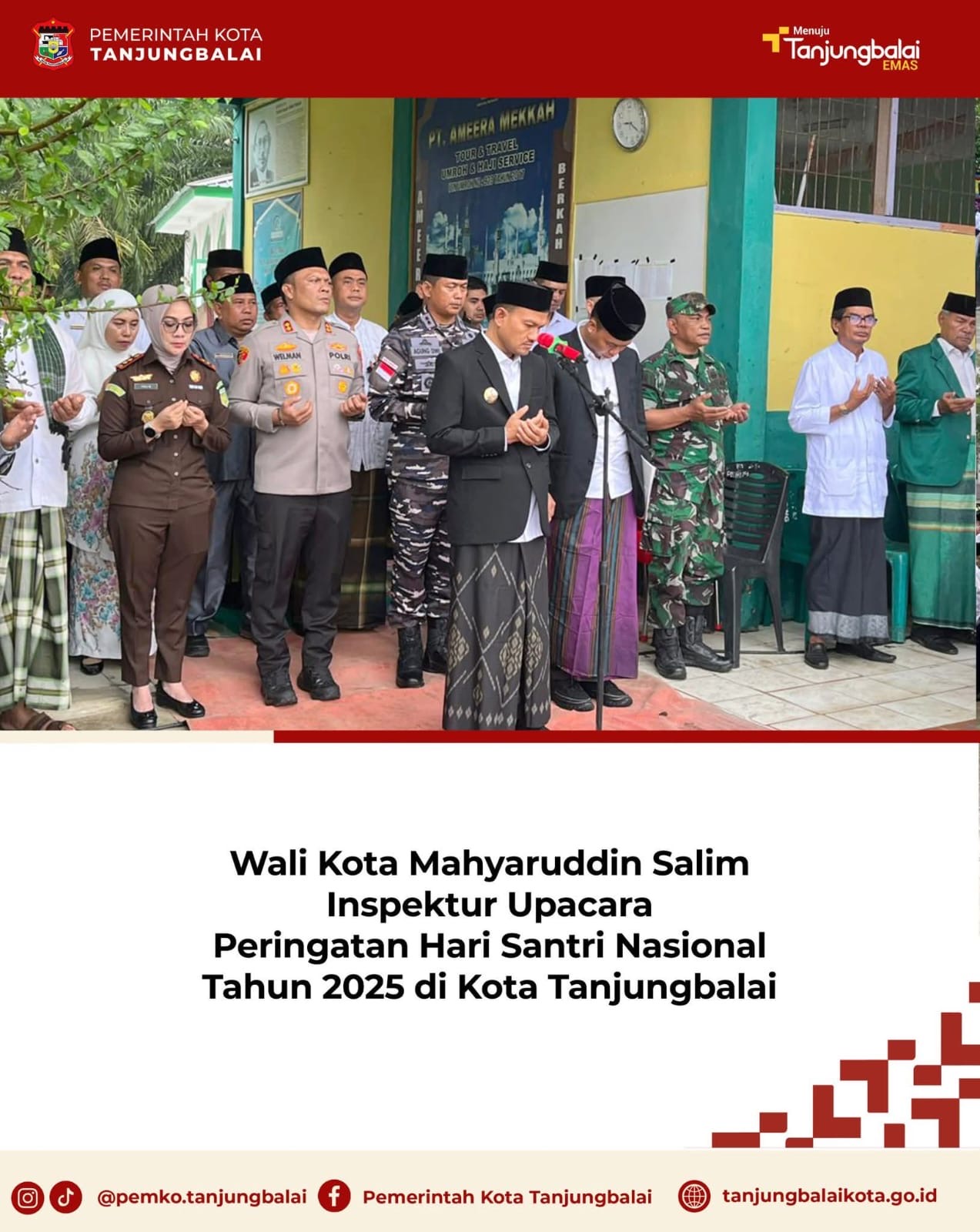Wali Kota Tanjungbalai Provinsi Sumatera Utara, Mahyaruddin Salim bertindak sebagai Inspektur Upacara pada Peringatan Hari Santri Nasional Tahun 2025 di Kota Tanjungbalai yang dilaksanakan di Sekolah Al-Wasliyah Gading, Rabu (22/10/2025).