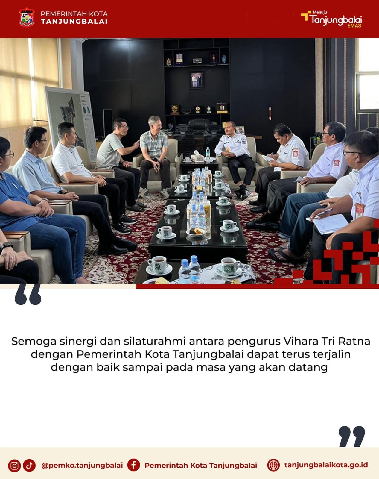 “Kalau kepentingan umat, kita berikan pelayanan utama. Pelayanan ini kita berikan bagi semua agama di Kota Tanjungbalai yang diakui negara,” ungkap Wali Kota Mahyaruddin Salim saat menerima audensi Pengurus Yayasan Vihara Tri Ratna Tanjungbalai bertempat di ruang kerja Wali Kota, Kantor Wali Kota Tanjungbalai, Rabu (22/10/2025).