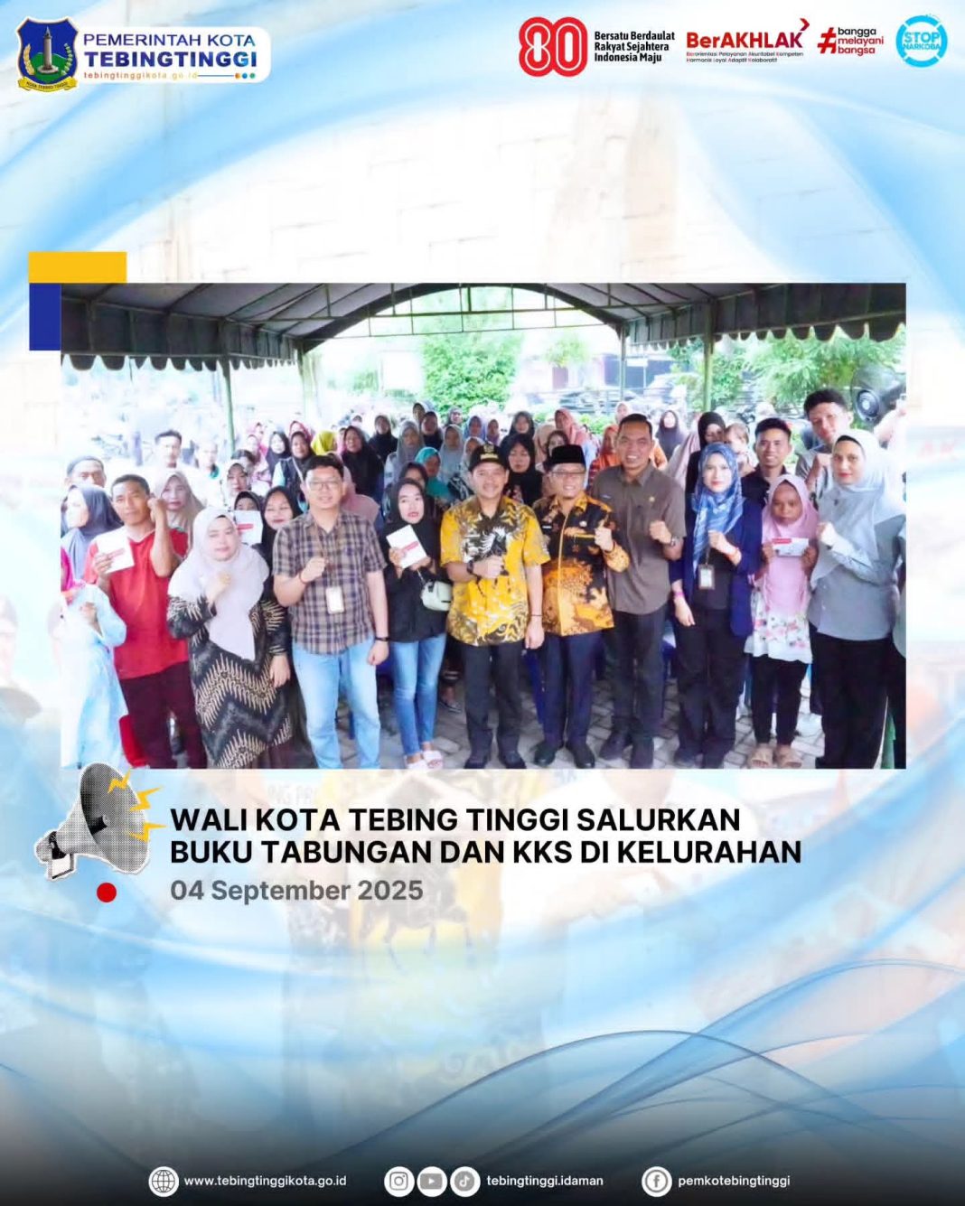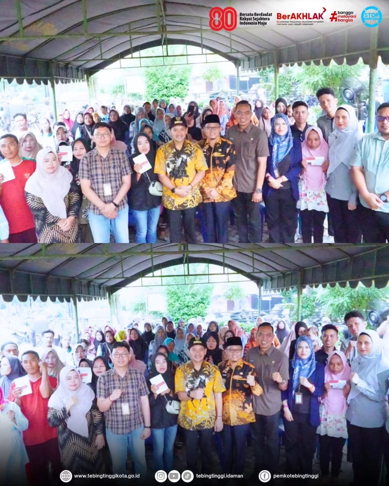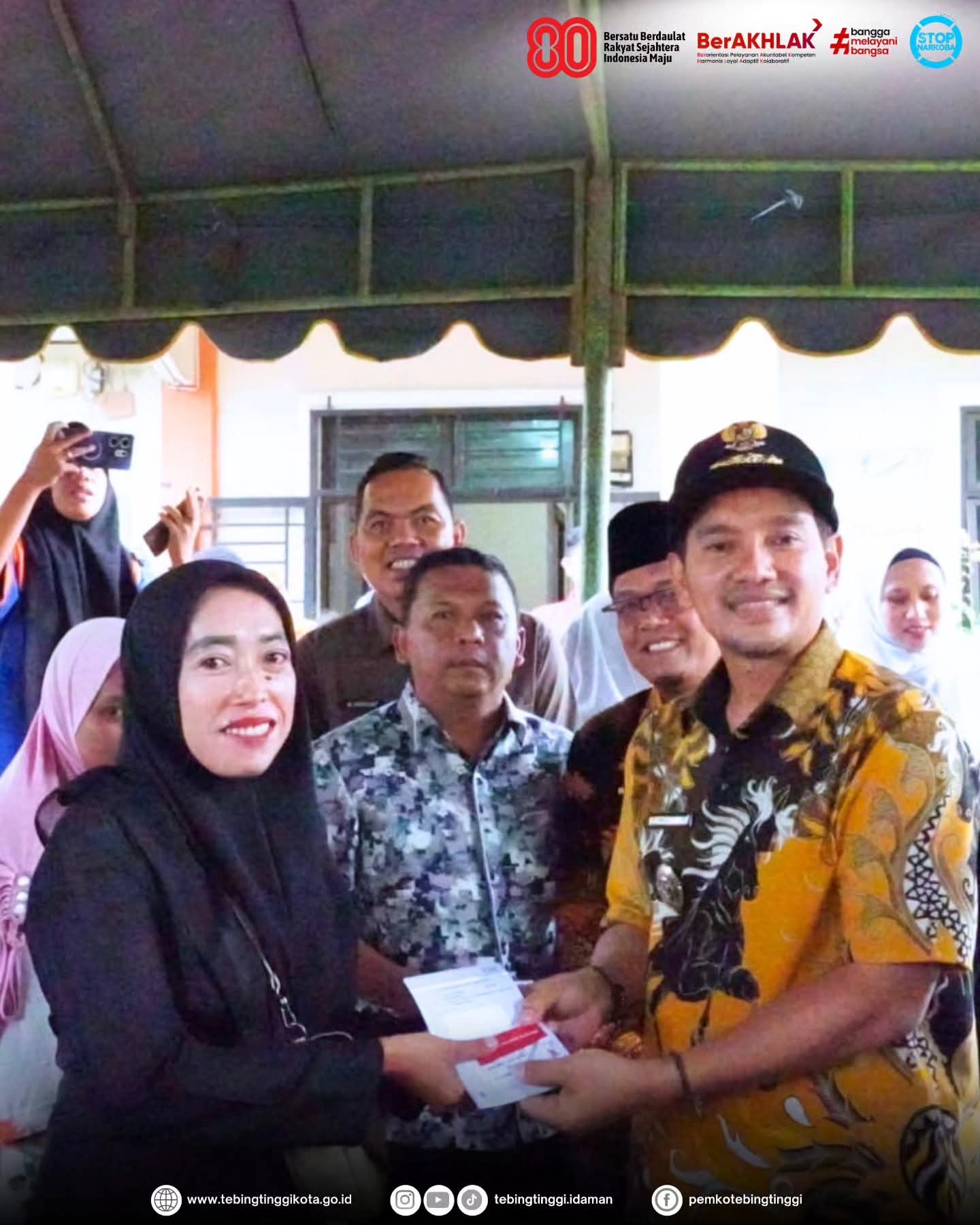 Wali Kota Tebing Tinggi, H. Iman Irdian Saragih, menyerahkan buku tabungan dan Kartu Keluarga Sejahtera (KKS) secara simbolis kepada Keluarga Penerima Manfaat (KPM) di Kantor Kelurahan Tanjung Marulak, Kamis (4/9/2025).